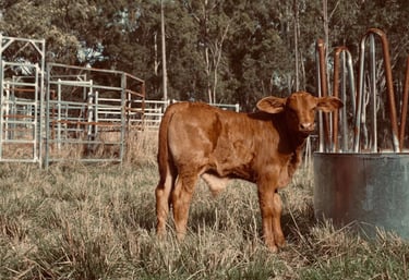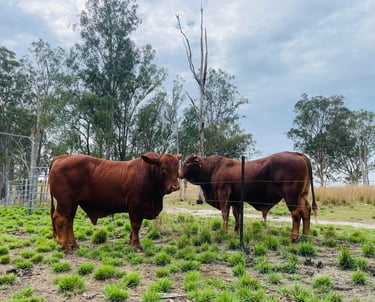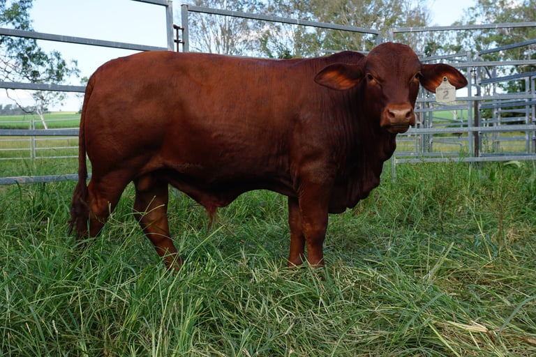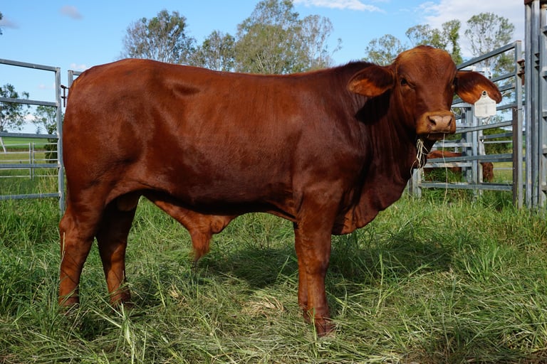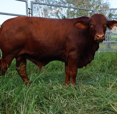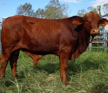Vale View Gillett 2 ‘Gilly’ was our first bull purchased from the 2024 Droughtmaster Bunya Bull sale. Gilly poses many desirable traits that we wish to add to our herd. We are excited to see what his future calves bring with our Corundum Park cows.